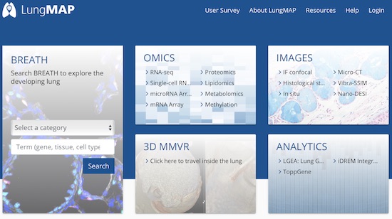 The LungMAP website provides access to a repository of data and metadata to support scientific explorations in lung development. Images and other data types are standardized and organized within a common ontology, or set of concepts and categories that shows their properties and the relations between them.