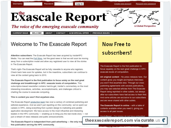 Welcome to the archives of The Exascale Report, a monthly newsletter that was acquired by insideHPC in 2014.